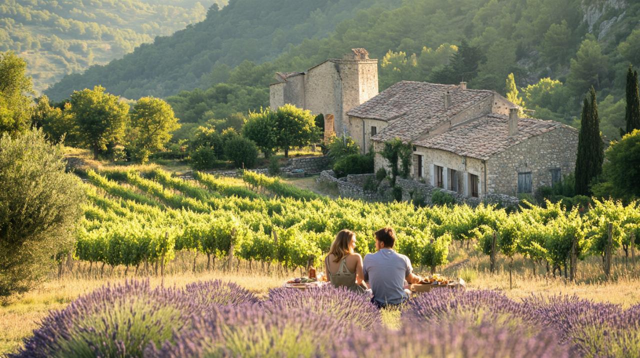 La Drôme, en el corazón de la Provenza francesa, se revela como un destino perfecto para las parejas que buscan una escapada romántica lejos del bullicio cotidiano. Con sus paisajes de ensueño que combinan viñedos ondulantes, campos de lavanda perfumados y pueblos medievales de piedra, esta región ofrece el escenario ideal para reconectar con tu pareja y vivir momentos únicos. Entre todas las experiencias que puedes disfrutar aquí, un vuelo en globo aerostático al amanecer sobre estos paisajes de postal se convierte en el broche de oro para un fin de semana que quedará grabado en la memoria.